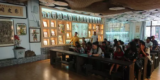 期間,考察團在聽取產(chǎn)業(yè)園區(qū)負責人對高黎貢文化產(chǎn)業(yè)創(chuàng)意園區(qū)相關情況匯報后,重點對進駐園區(qū)的騰沖非物質(zhì)文化遺產(chǎn)——騰沖翡翠博物館、土陶燒制工藝、手工油紙傘、蕎藝制品、手抄古紙、藤編、手工布鞋及皮影表演制作等進行了參觀指導。