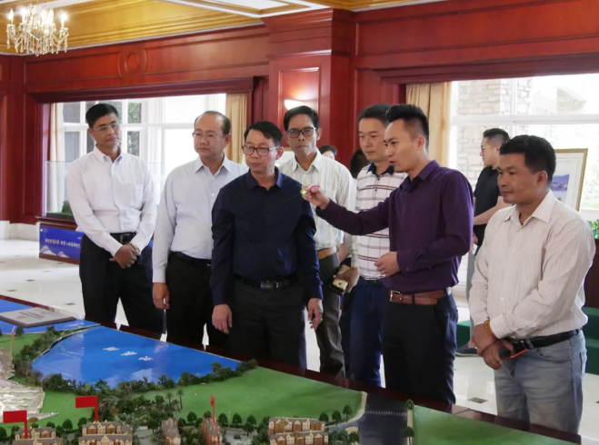 在恒益集團副總裁彭安強及相關領導陪同下,吳偉林部長一行參觀了恒益集團東山康養小鎮總規沙盤、高黎貢文化創意產業園區,聽取了項目介紹及匯報。吳偉林部長重點就康養小鎮項目規劃、投資、建設、運營、銷售等方面做了詳細了解,雙方就緬甸密支那經濟開發區項目總規、可研等問題做了深入交流。