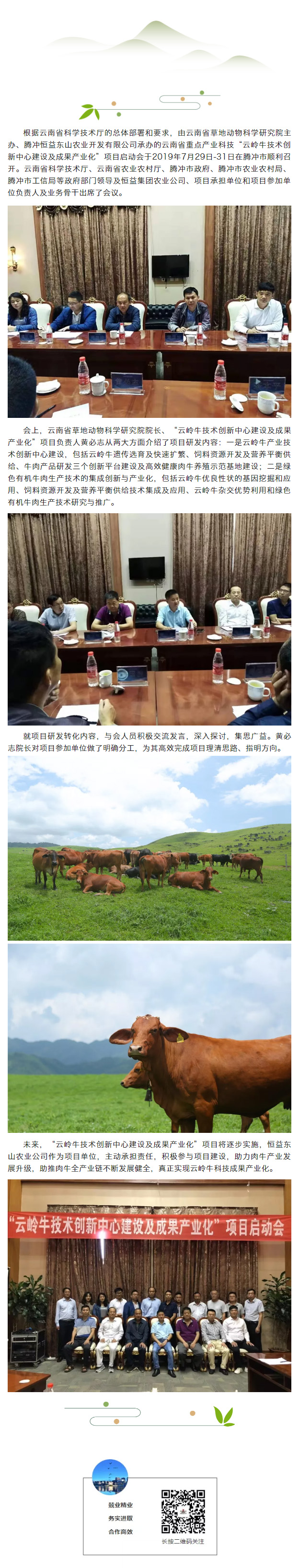 “云嶺牛技術創新中心建設及成果產業化”項目啟動會順利召開,助力云嶺牛產業發展升級 來源: 瀏覽量:7937 日期:2019-08-14 分享到: 上一篇:恒益集團組織開展無償獻血活動 下一篇:恒益集團“中緬友好畜牧、種植技術培訓班” 在云南農大順利結業