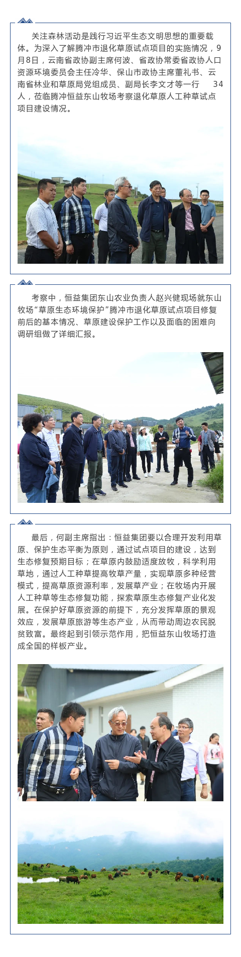 云南省政協調研組一行蒞騰到恒益東山牧場考察調研 來源: 瀏覽量:7246 日期:2020-09-10 分享到: 上一篇:恒益集團組織召開2021年全面預算編制工作啟動及培訓會 下一篇:熱烈祝賀云南保山恒益實業集團榮獲“2020年度云南省非公企業100強”殊榮