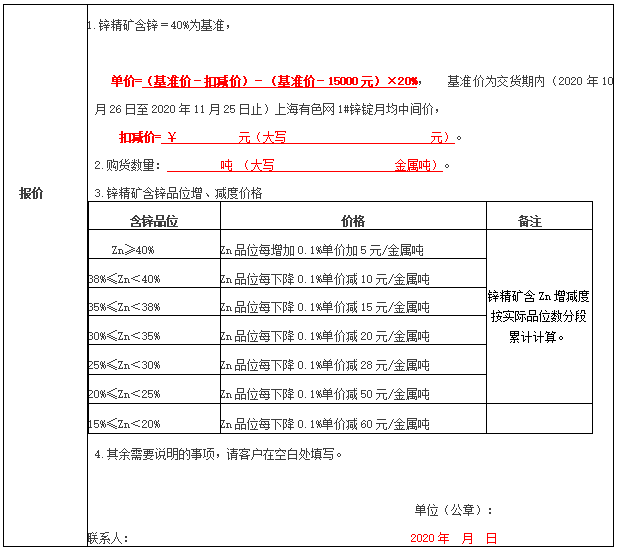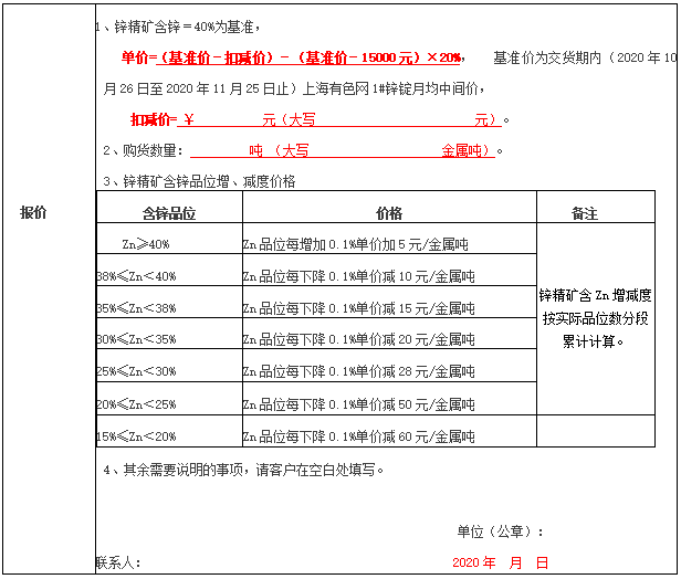 附件 騰沖市恒益礦產品經貿有限責任公司 鋅精礦銷售報價單