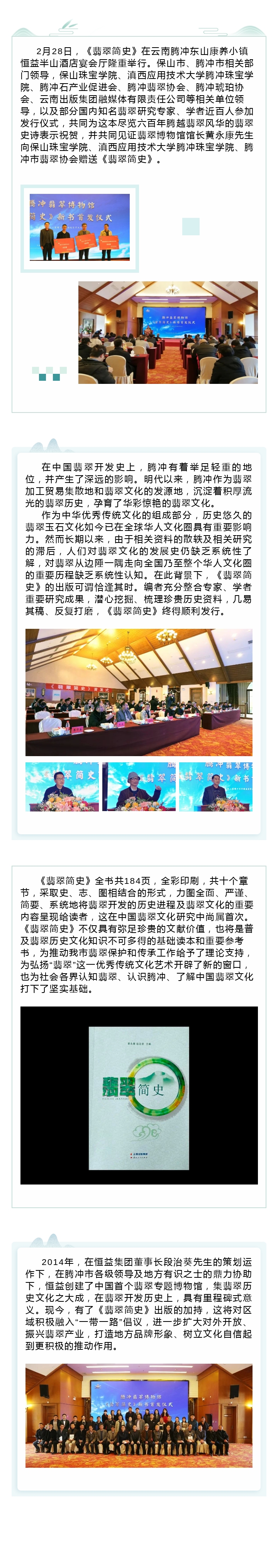 國內(nèi)第一本系統(tǒng)介紹翡翠文化形成與發(fā)展歷程的圖書——《翡翠簡史》在云南騰沖正式發(fā)行 來源: 瀏覽量:6399 日期:2021-03-01 分享到: 上一篇:“東山之下,原創(chuàng)詩歌、散文分享會(huì)”在東山書院隆重舉行 下一篇:恒益礦業(yè)公司明光區(qū)域組織全員進(jìn)行核酸檢測