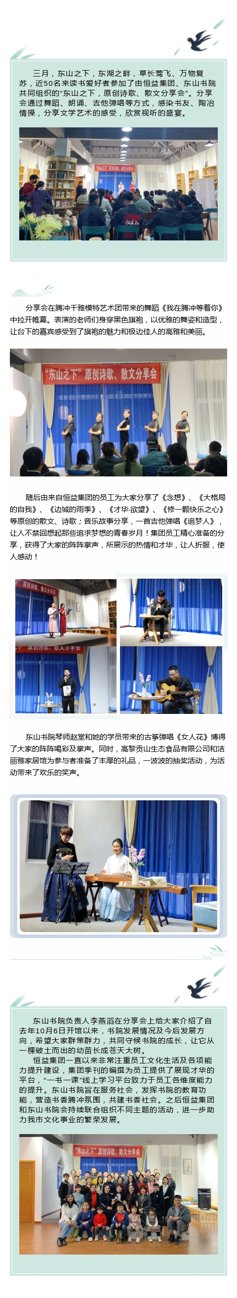 “東山之下,原創詩歌、散文分享會”在東山書院隆重舉行 來源: 瀏覽量:6698 日期:2021-03-09 分享到: 上一篇:恒益集團掛牌“騰沖市對外友好協會文化交流基地” 下一篇:國內第一本系統介紹翡翠文化形成與發展歷程的圖書——《翡翠簡史》在云南騰沖正式發行