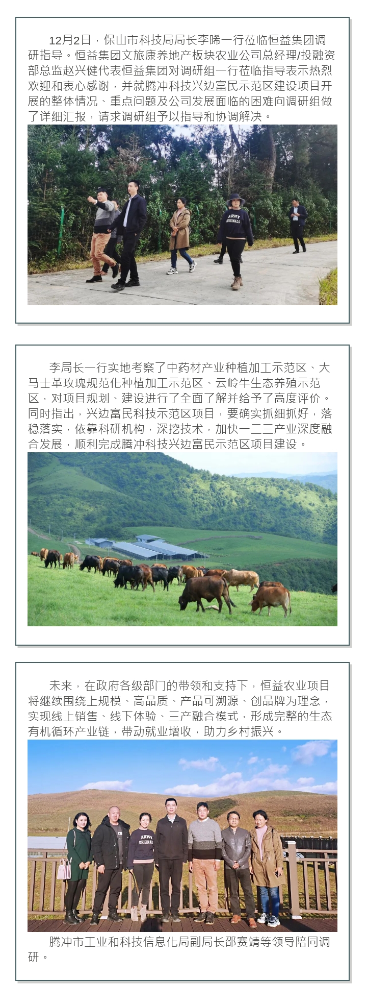 保山市科技局局長李晞一行蒞臨恒益農業調研指導 來源: 瀏覽量:6093 日期:2021-12-08 分享到: 上一篇:恒益集團景秀東山項目品鑒會成功舉辦 下一篇:政校企共建云南省溫泉研究院簽約儀式成功舉辦