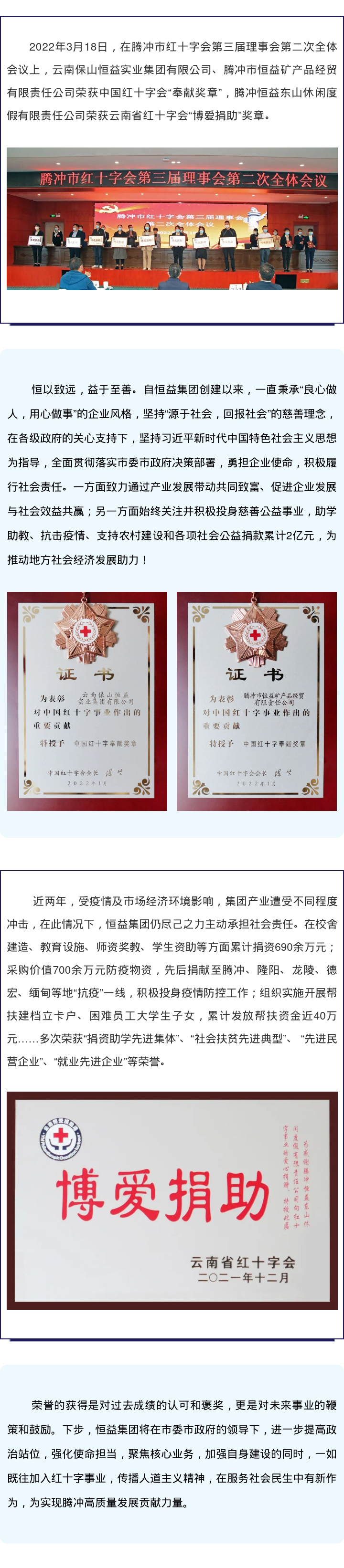 恒益集團三家公司榮獲紅十字會表彰 來源: 瀏覽量:5645 日期:2022-03-21 分享到: 上一篇:欲明其流,必溯其源——騰沖翡翠博物館組織召開“馬玉石”專題研討會 下一篇:校企合作,共推溫泉康養產業發展
