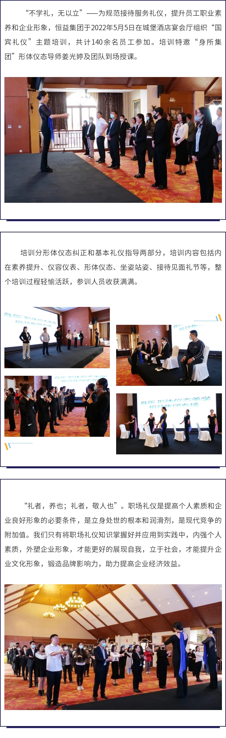博學于文,約之以禮——恒益集團組織“國賓禮儀”主題專場培訓 來源: 瀏覽量:5496 日期:2022-05-07 分享到: 上一篇:保山市騰沖邊境經濟合作區管理委員會與云南保山恒益實業集團簽訂項目合作協議 下一篇:新時代,新經濟,新機遇——恒益集團首期經營管理實戰培訓