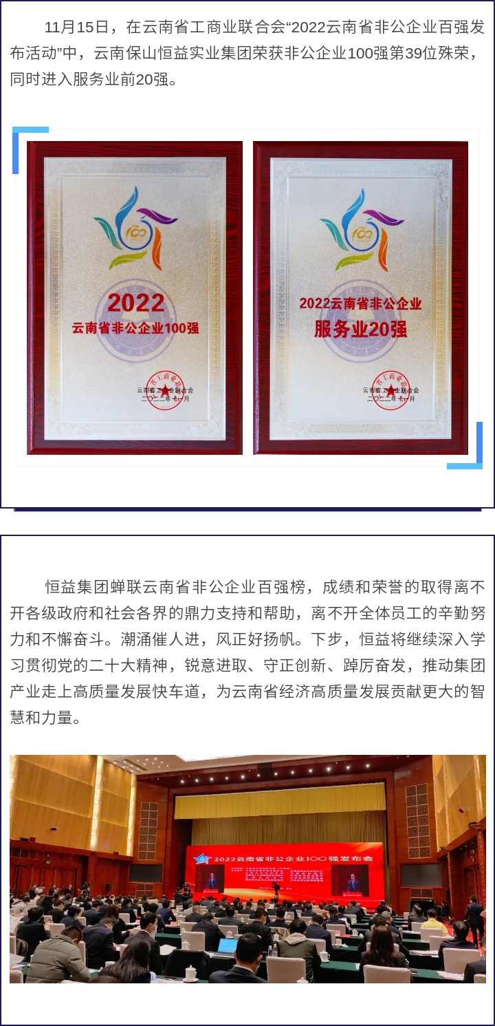 喜訊丨恒益集團蟬聯云南省非公企業百強榜
