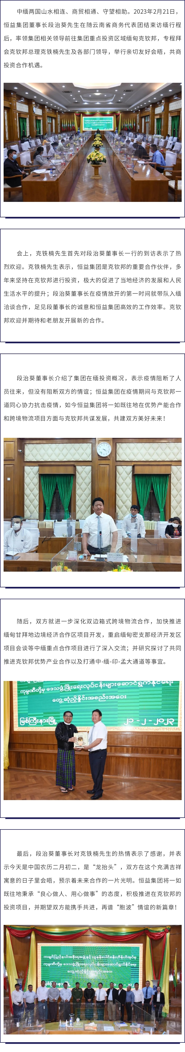 “新年新開局,共話胞波情”——恒益集團董事長拜訪克欽邦領導、共謀合作新篇章 來源: 瀏覽量:5484 日期:2023-02-22 分享到: 上一篇:國家肉牛產業技術體系專家團隊蒞臨恒益農業調研指導“云嶺牛”全產業鏈發展 下一篇:鼓蕩激情揚征棹 一路輕舟乘東風