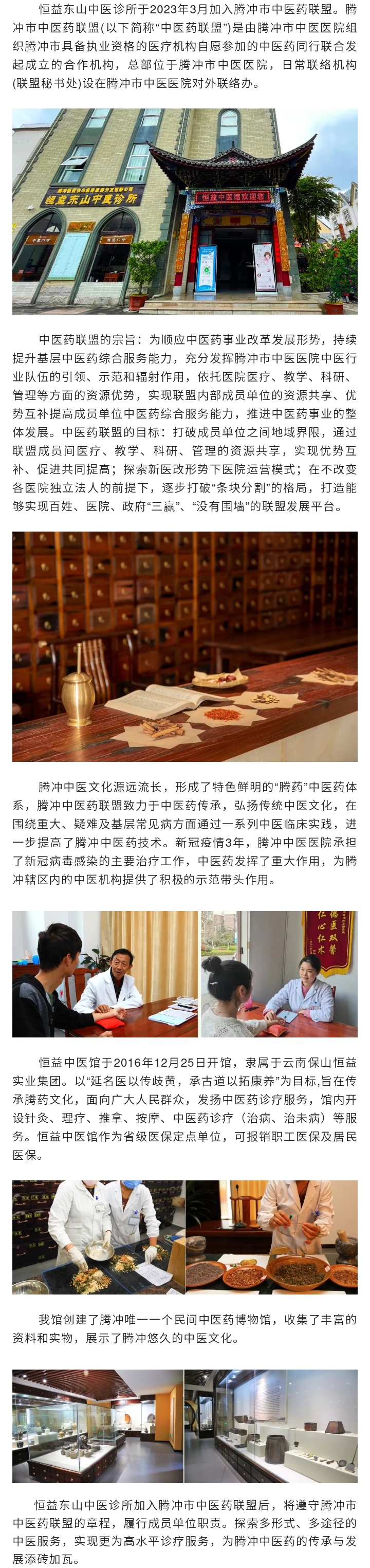 喜訊 | 恒益東山中醫(yī)診所加入騰沖市中醫(yī)藥聯(lián)盟 來源: 瀏覽量:4918 日期:2023-03-20 分享到: 上一篇:云南騰沖露絲福生物產(chǎn)業(yè)有限責(zé)任公司 露絲福大馬士革玫瑰精深加工項(xiàng)目環(huán)境影響評價公眾參與第二次信息公示 下一篇:東山棧道 巾幗健行