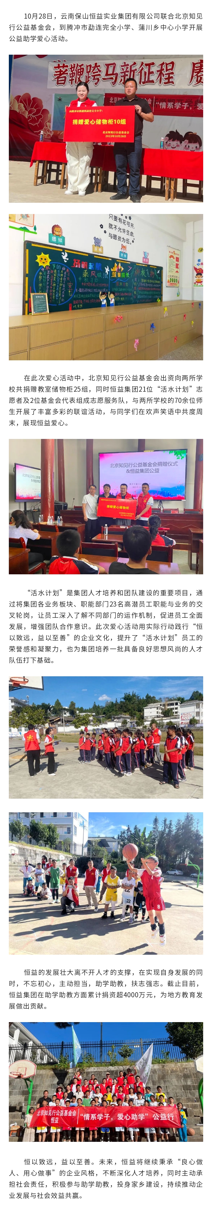 情系學子 愛心助學| 恒益集團聯合知見行公益基金會開展公益助學愛心活動 來源: 瀏覽量:3970 日期:2023-10-30 分享到: 上一篇:東山實訓基地首期新員工培訓圓滿結束 下一篇:滇灘鐵礦東排土場建設項目一期工程施工監理招標公告