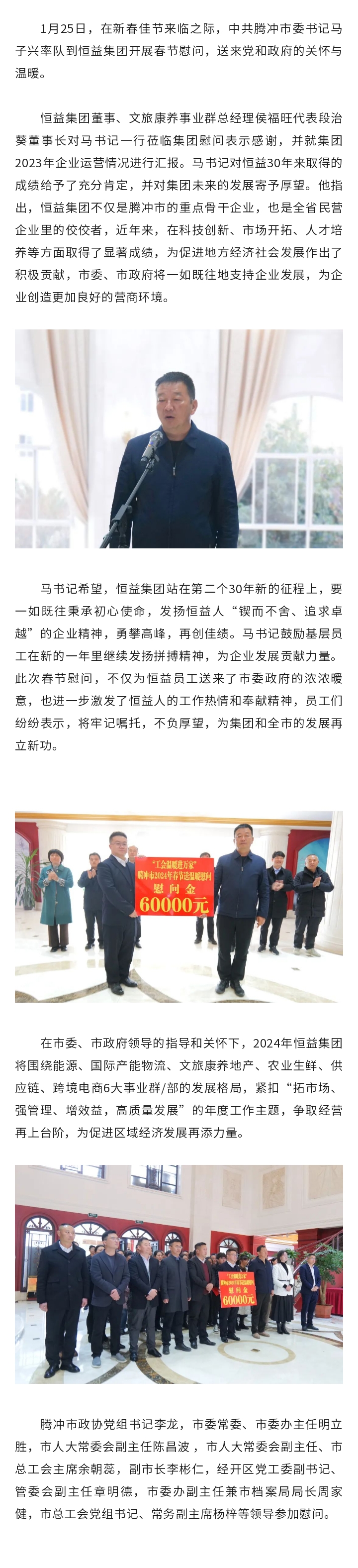 新春送祝福,關(guān)懷暖人心丨中共騰沖市委書記馬子興率隊到恒益集團開展春節(jié)慰問 來源: 瀏覽量:4110 日期:2024-01-25 分享到: 上一篇:花卉所科技人員指導(dǎo)露絲福公司開展鄉(xiāng)村振興科技創(chuàng)新縣——大馬士革玫瑰全產(chǎn)業(yè)鏈技術(shù)集成課題 下一篇:“拓市場,強管理,增效益,高質(zhì)量發(fā)展”——恒益集團組織召開第二屆董事會第八次會議暨2023年度工作會議