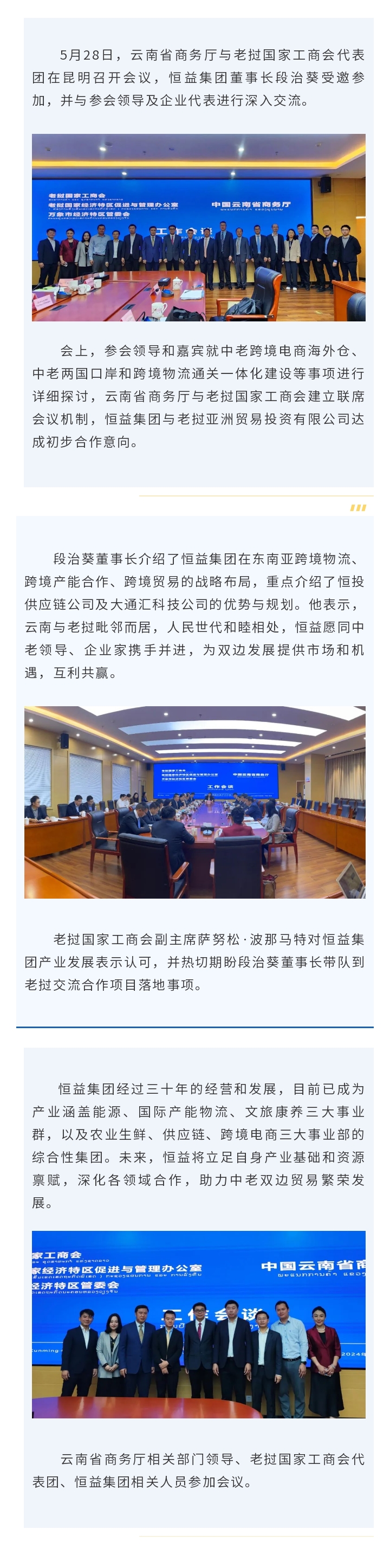 恒益集團受邀參加云南省商務廳與老撾國家工商會代表團會議 來源: 瀏覽量:3822 日期:2024-05-29 分享到: 上一篇:恒益集團組織開展采購招標管理培訓 下一篇:云南省商務廳副廳長馬俊一行蒞臨恒益集團物流項目調研指導