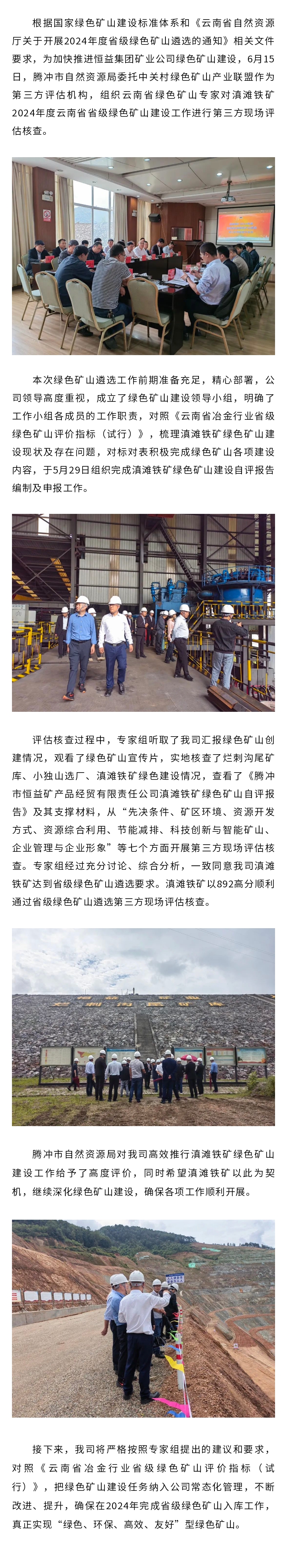 恒益滇灘鐵礦順利通過省級綠色礦山遴選第三方現場評估核查 來源: 瀏覽量:4098 日期:2024-06-17 分享到: 上一篇:恒益集團、云溫院、臺灣醫療財團法人國際醫學科學研究基金會簽署三方戰略合作框架協議 下一篇:恒益集團組織開展采購招標管理培訓