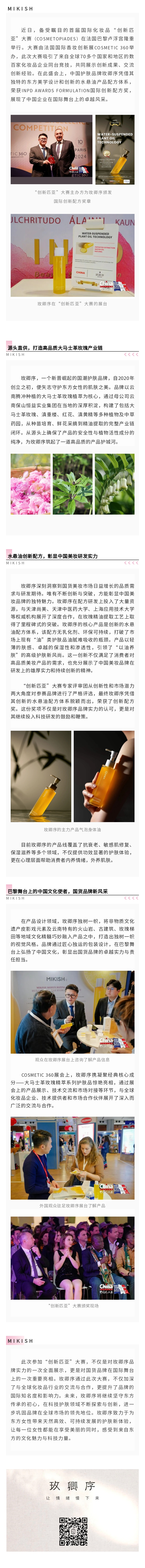 國貨品牌玫卿序閃耀巴黎“創新匹亞”大賽,榮獲INPD國際創新配方獎 來源: 瀏覽量:3468 日期:2024-10-22 分享到: 上一篇:跟著賽事去旅行丨恒益康旅福利大放送,@高黎貢超級山徑賽參賽選手們 下一篇:助企幫扶丨昆明海關工作組一行蒞臨恒益集團調研指導