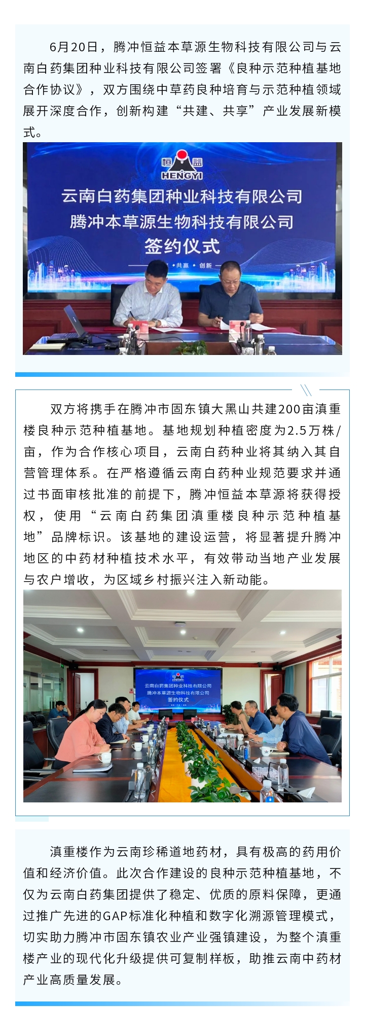 恒益本草源與云南白藥種業簽署合作協議 來源: 瀏覽量:1554 日期:2025-06-20 分享到: 上一篇:會聚良緣 情定東山丨是我和你關于相遇的童話 下一篇:恒益溫泉醫康養與您相約南博會,共筑健康中國夢