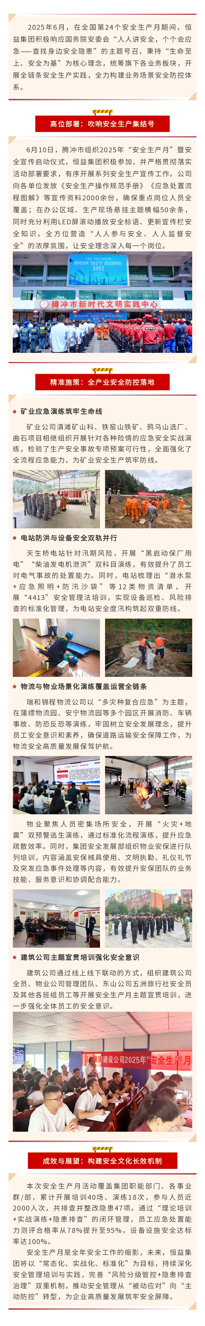 安全生產月,恒益這樣做 來源: 瀏覽量:1677 日期:2025-06-27 分享到: 上一篇:東方非遺美學傳承計劃 | 五洲國旅&一心美育2025暑期非遺美學班招生啦 下一篇:增效煥新,綠路先行丨恒益集團書寫低碳減排綠答卷