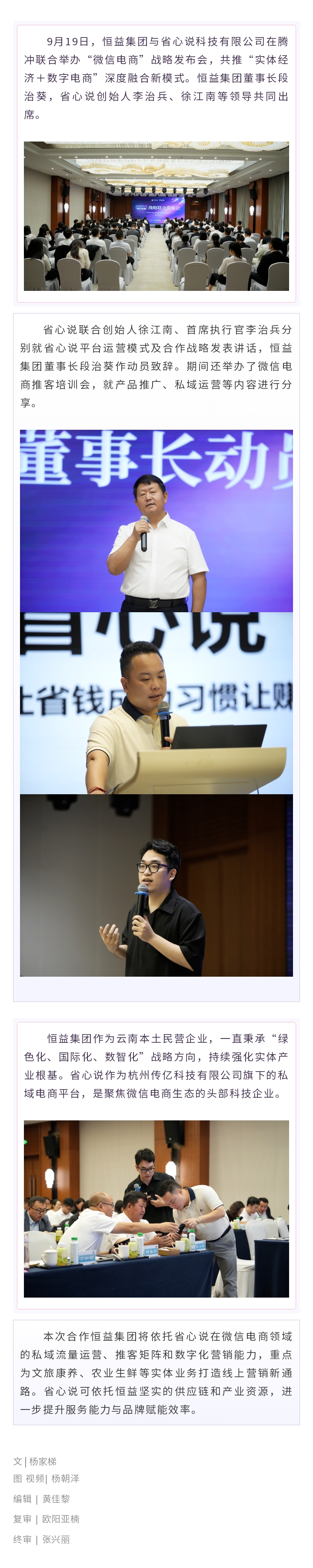 恒益集團與省心說科技達成合作 共筑微信電商新生態 來源: 瀏覽量:1001 日期:2025-09-19 分享到: 上一篇:榮登雙榜!恒益集團榮獲2025云南民企百強第30位、服務業20強第8位 下一篇:喜訊丨恒益集團榮膺2025年“騰沖市教育事業高質量發展先進集體”稱號