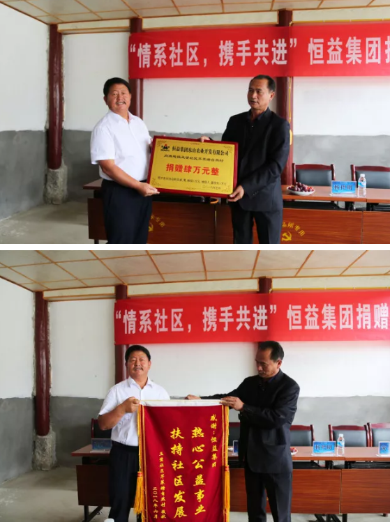 捐贈活動中,騰越鎮玉璧社區總支書回贈了恒益集團“熱心公益事業,扶持社區發展”的錦旗,并祝愿集團的事業蒸蒸日上,更上一層樓!